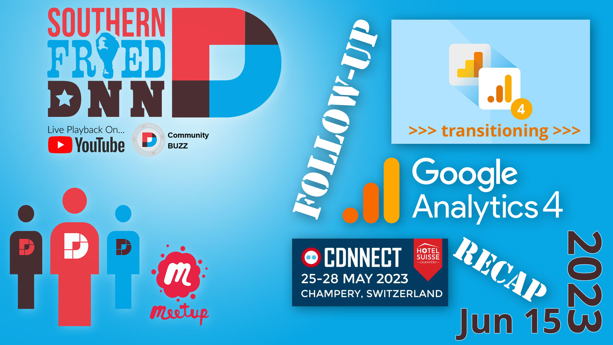 This meetup will serve as a follow-up to last month's recorded-only meetup on Transitioning to Google Analytics 4 (GA4). Watch the replay on YouTube HERE and bring your questions/comments. Afterward, we will recap all the wonderful things from DNN Connect 2023. There were so many great takeaways, so you will not want to miss this - there's something for everyone!